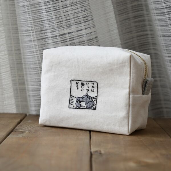 1コマ漫画刺繍「めずらしい」BOXポーチ/sizeL
