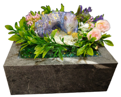 【宝箱】眠り狼オブジェ アートフラワーVer【箱庭シリーズ】