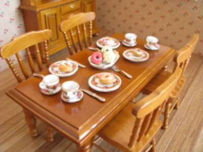 ミニチュア家具 ダイニングテーブルセット 長方形卓+椅子4脚 くるみ色 ID014-WL