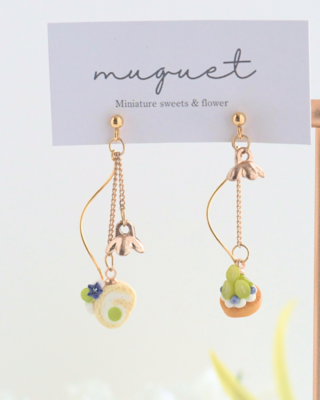 シャインマスカットと桔梗のスイーツ【ミニチュア】お耳飾り