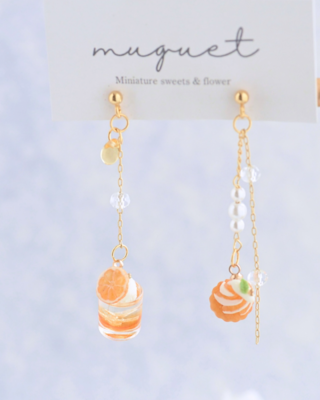 オレンジのクリームソーダとタルト【ミニチュア】ピアス/イヤリング