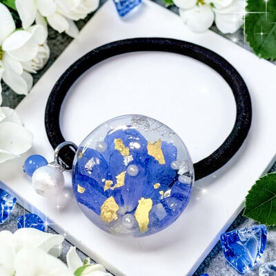 金沢の金箔・銀箔とデルフィニウムのヘアゴム